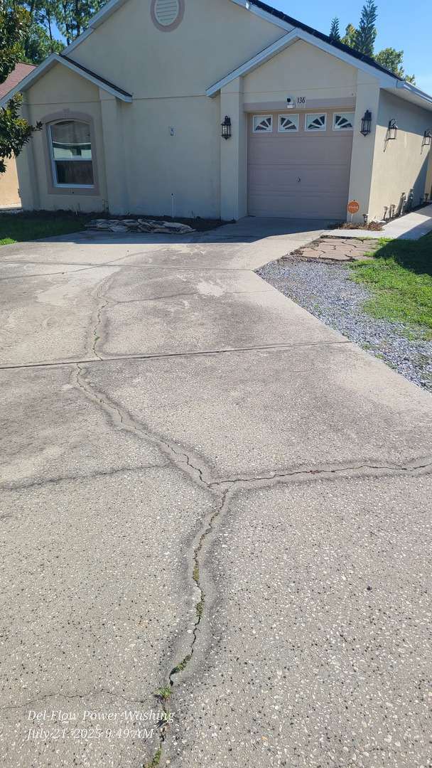 This particular project took our Del-Flow Power Washing team to a home in the heart of Seminole County, Sanford FL, 32771. The homeowner was seeking a comprehensive Sanford pressure washing solution including driveway pressure washing to remove stubborn algae and tire marks, and house soft washing to address the visible mildew buildup on the siding. This project proved to be another perfect opportunity to showcase our professional, high-quality services, resulting in a 5-star clean and drastic improvement in curb appeal.