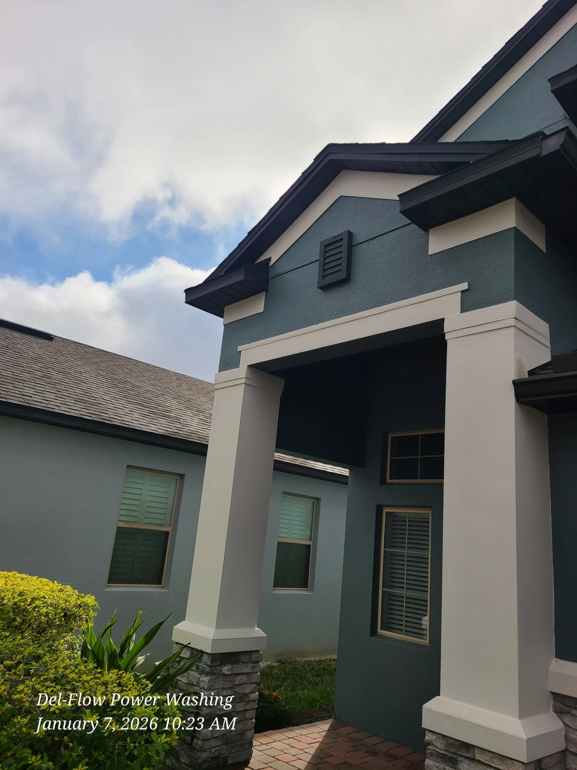 The scope covered a full low-pressure wash of all exterior vertical and overhead surfaces, including the siding, soffits, fascia, and trim. Our soft application method combined professional detergents and a controlled rinse to safely lift pollutants and organic growth from painted and vinyl materials. While this project focused on exterior surfaces, many clients pair this service with window cleaning central fl to complete the look.