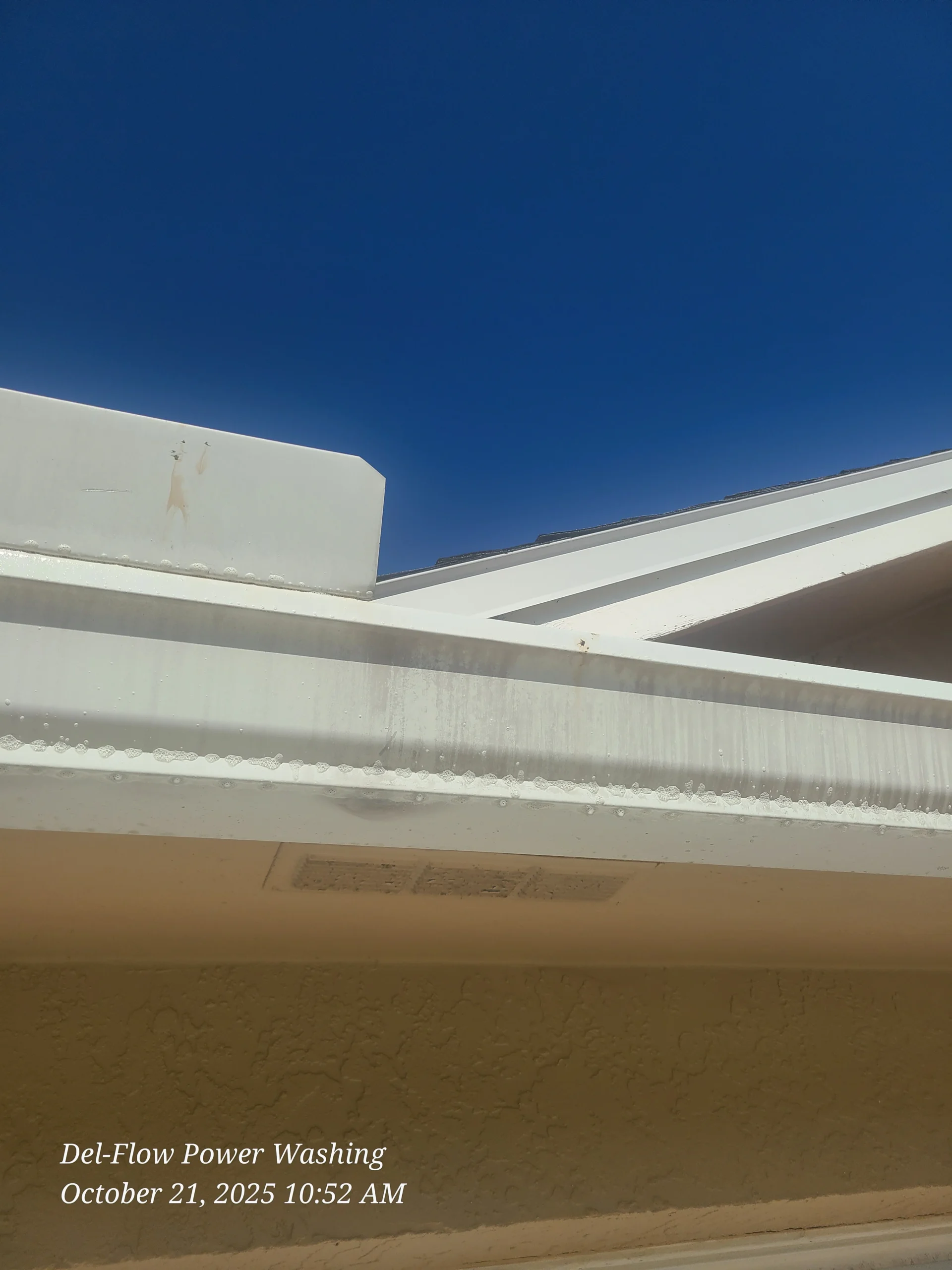 At Del-Flow Power Washing, our diligent technicians utilize modern technology and top-grade equipment to carry out gutter cleaning and oxidation stain removal services effectively. For this project, we made use of high-quality chemical solutions, professional power washing machines and sturdy tools for manual scrubbing.