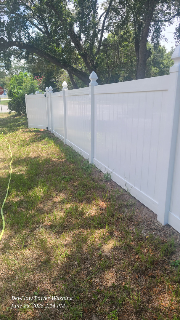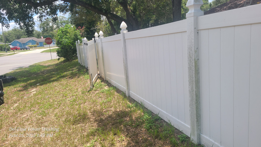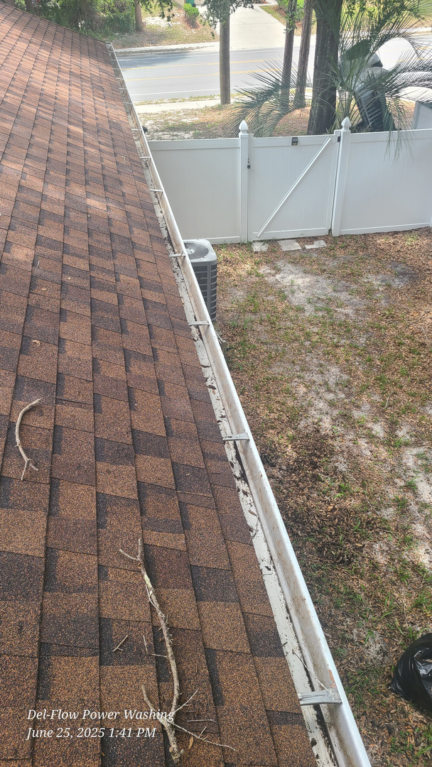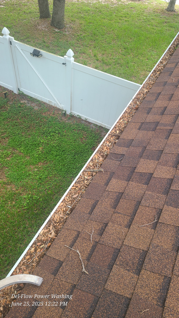 The crux of our project involved meticulous roof cleaning services in Deltona FL. Simultaneously, tasks included manual gutter cleaning, exterior window cleaning, and a delicate vinyl fence soft wash.