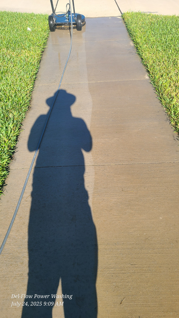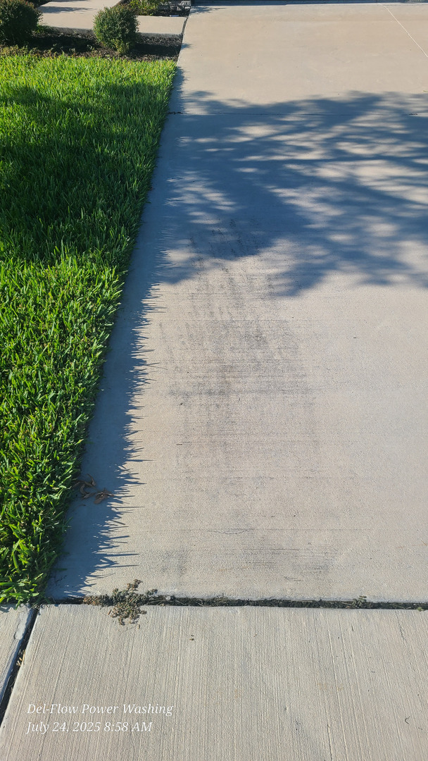 At Del-Flow Power Washing, we believe in the synergy of top-grade cleaning gear and environmentally friendly products. This driveway and sidewalk cleaning job was executed with powerful pressure washers and tools capable of stripping dirt, mold, and superficial debris without causing any damage to the underlying surfaces.