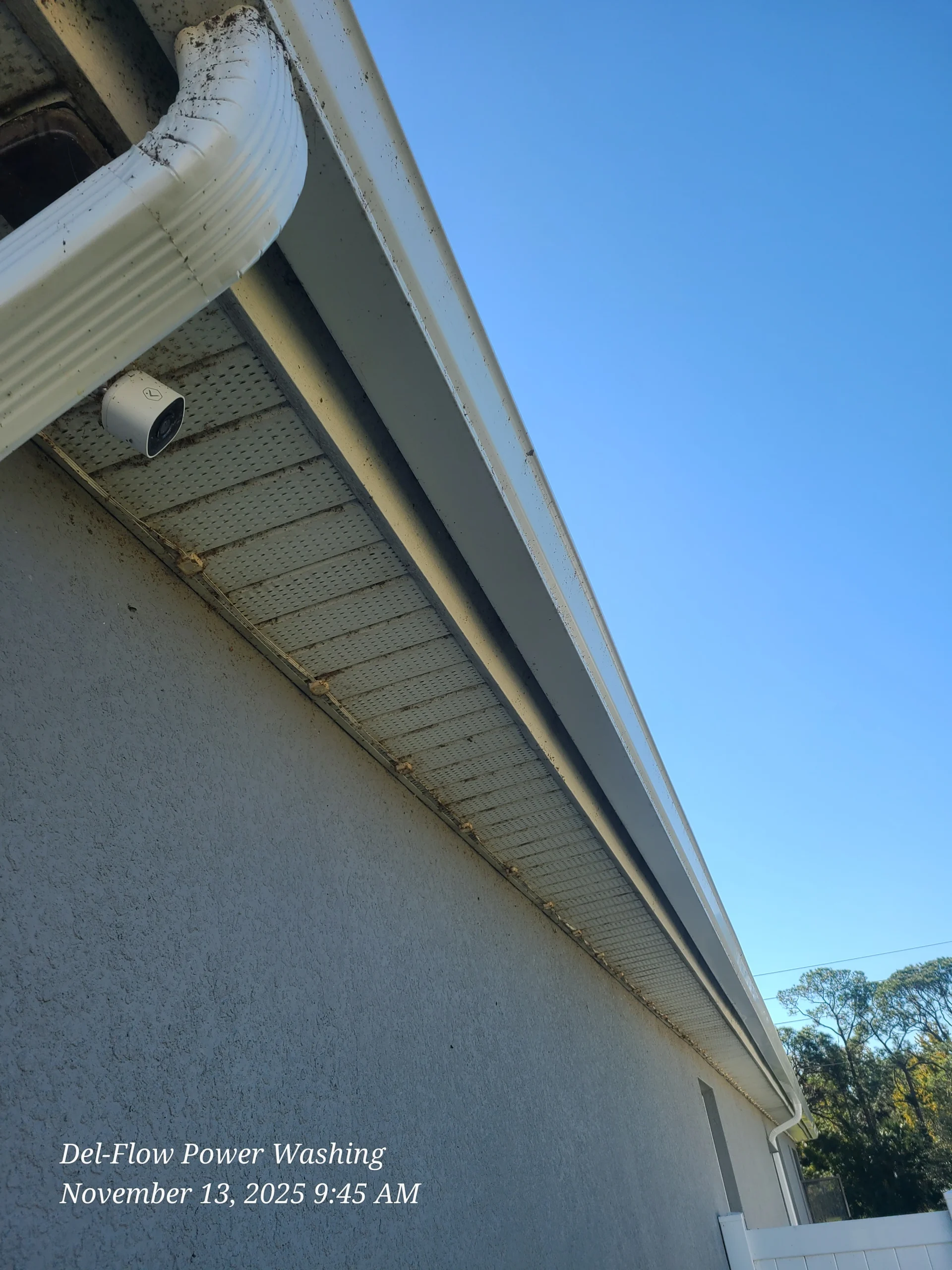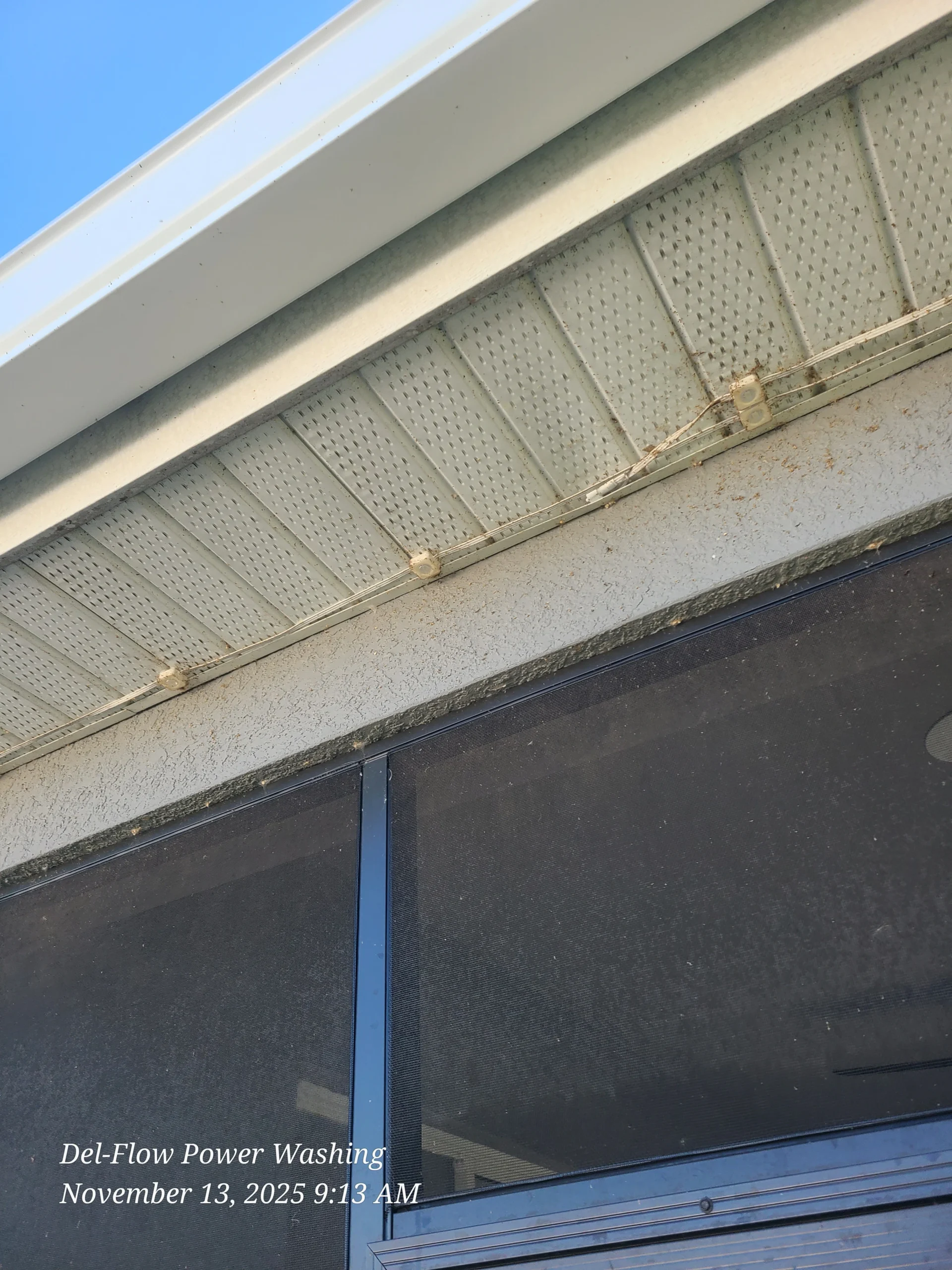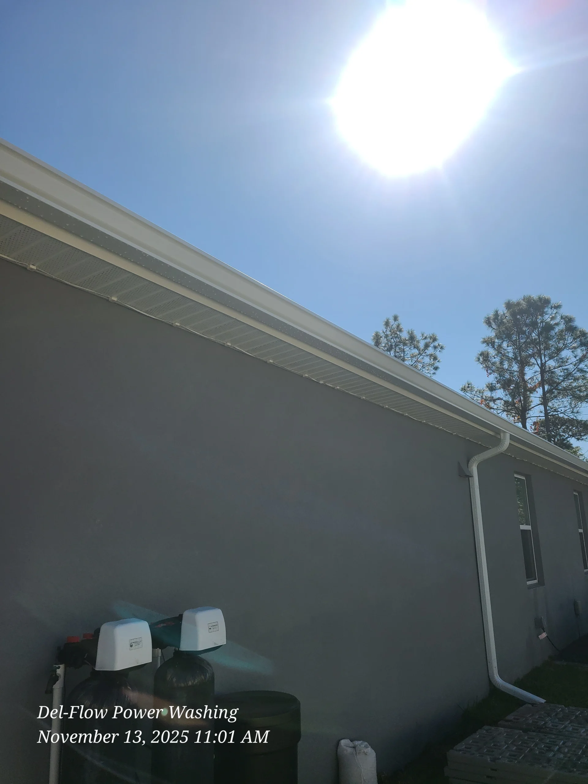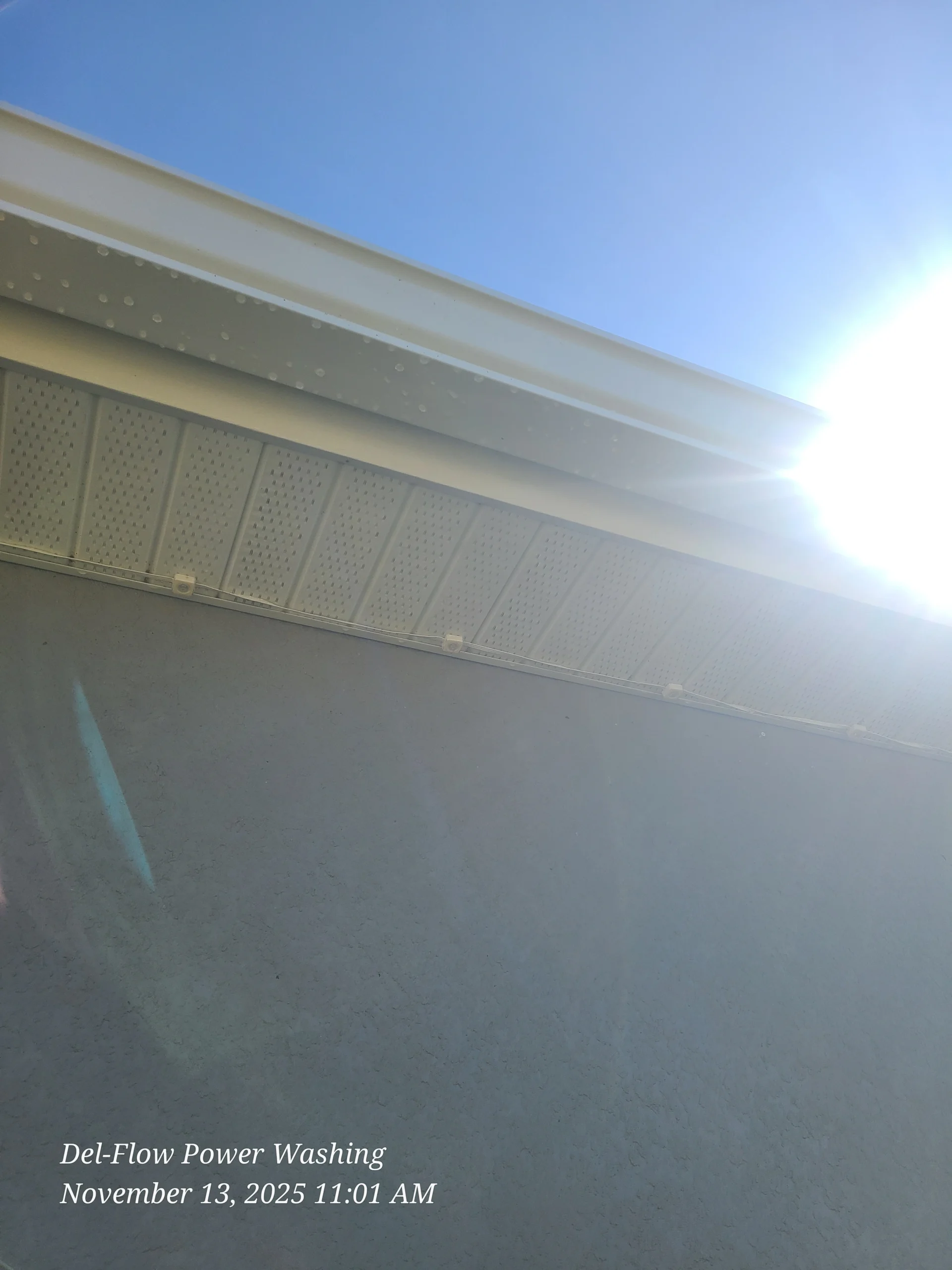 At Del-Flow, we uphold our reputation by using the best-in-class equipment and eco-friendly products. In this project, we used professional-grade softwashing machines, designed to deliver the perfect balance of pressure and cleaning solutions. This ensured total dirt and algae removal while preserving the integrity of the house exterior and vinyl fence.