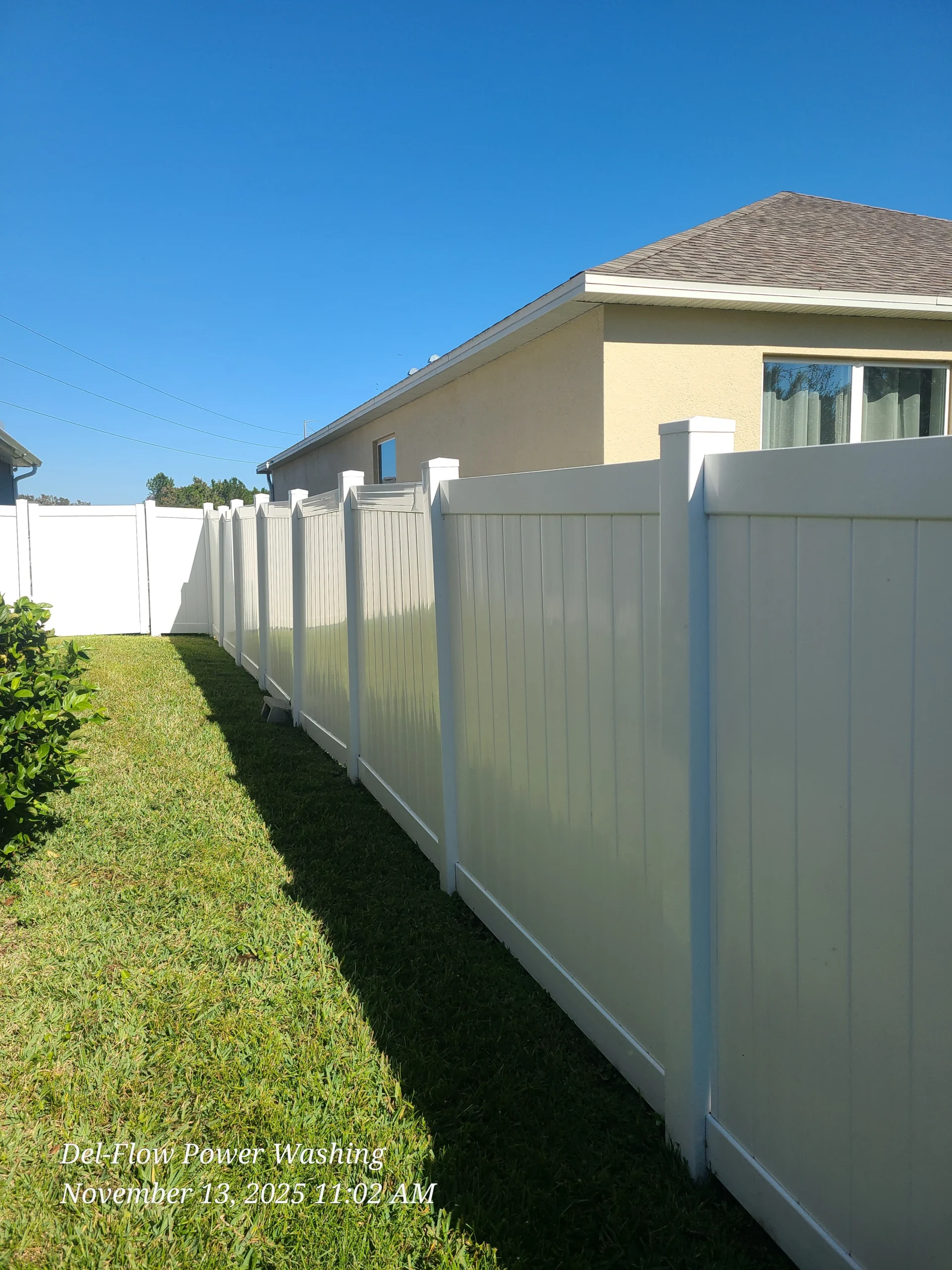 In the pleasing neighborhood of DeBary, FL, our team at Del-Flow was hired for a comprehensive project. The clients sought expert help to restore the vibrancy of their house exterior and vinyl fence, which over time had been tarnished by cobwebs and algae accumulation.The beauty of DeBary homes can fade from exposure to Florida’s humid climate, leading to the growth of unwanted organisms on the exterior of buildings and fences. That’s where we came in. Our dedicated team excels at refurbishing homes and fences, ensuring they look as good as new.